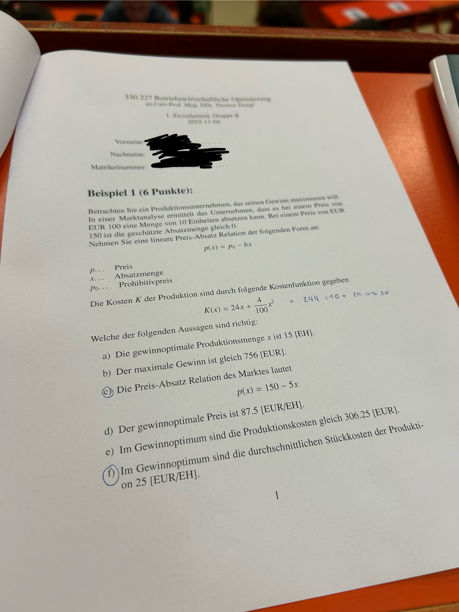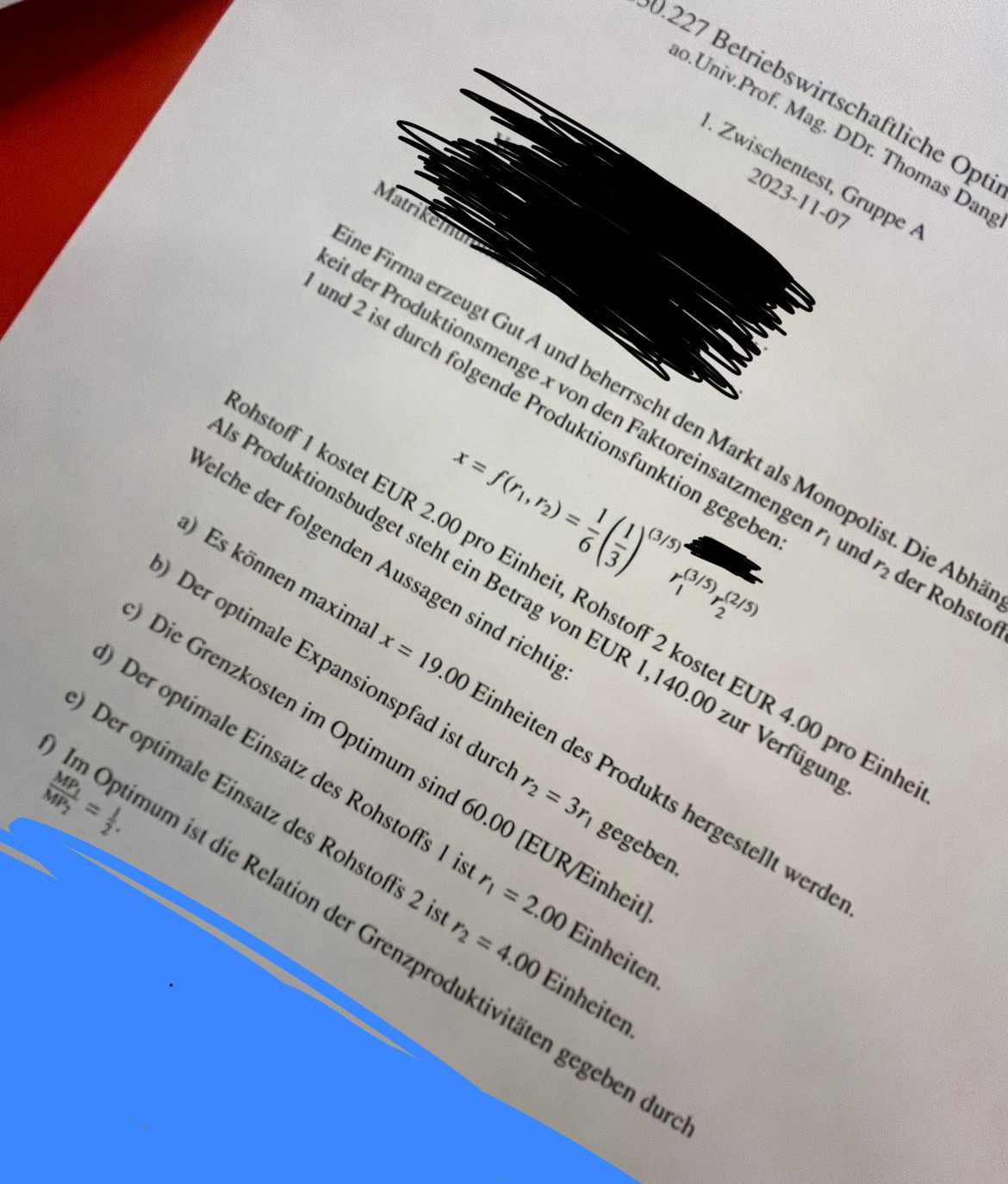 Achtung: Die Prüfungen werden stichprobenartig durchgesehen und es wird geprüft ob ein Rechenweg vorhanden ist und die Ergebnisse nicht nur geraten sind. Sollte Herr Dangl. zum Schluss kommen, dass hier nur geraten wurde, kann es sein, dass man in die Sprechstunde gebeten wird. SS23 wäre mir nicht aufgefallen