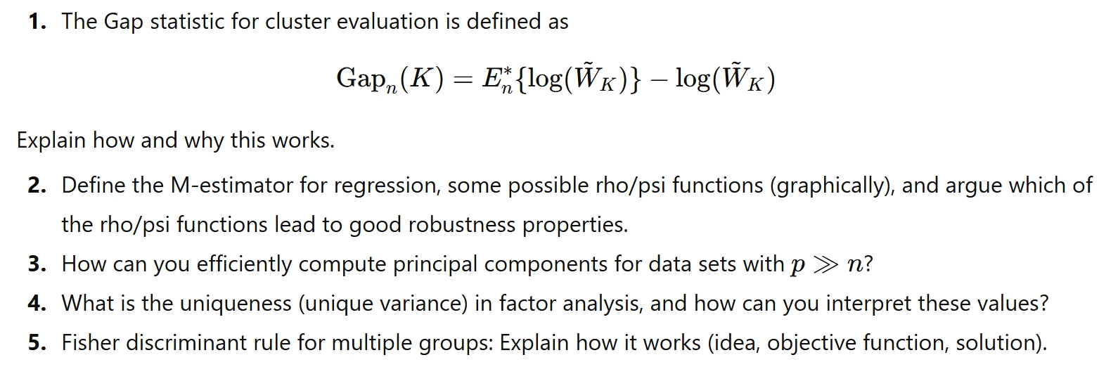 Clusteranalyse, Multivariate lineare Regression, Robuste Statistik, Hauptkomponentenanalyse, Faktorenanalyse, Korrelationsanalyse, Diskriminanzanalyse, Projection Pursuit.